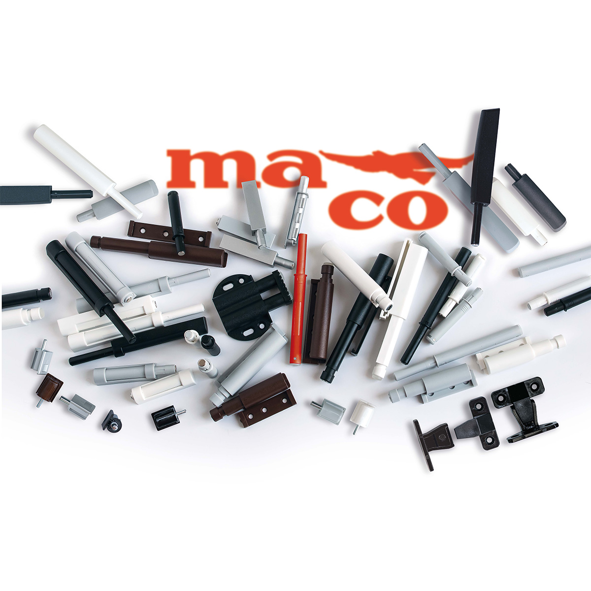 Nel 1958, a tre anni dalla fondazione, l’attività di MACO è in forte crescita e l’azienda annovera già quattro dipendenti. Negli anni successivi, il progressivo sviluppo del settore permette di strutturare l’azienda in modo più articolato ed efficiente. Il 1960 si avvale dei primi agenti di vendita, che esplorano opportunità fuori dalla Brianza. Nel 1961 viene depositato il brevetto della prima cerniera a cardine, interamente progettata e prodotta internamente. Il successo commerciale porta all’esigenza di spazi più ampi e la sede si trasferisce in un capannone di 450 metri quadri, dotato di moderne attrezzature per incrementare la produzione con nuove linee. A metà degli anni ’60 MACO partecipa alle principali fiere nazionali di settore, conta 12 dipendenti e introduce un reparto dedicato allo stampaggio a iniezione di materie plastiche.