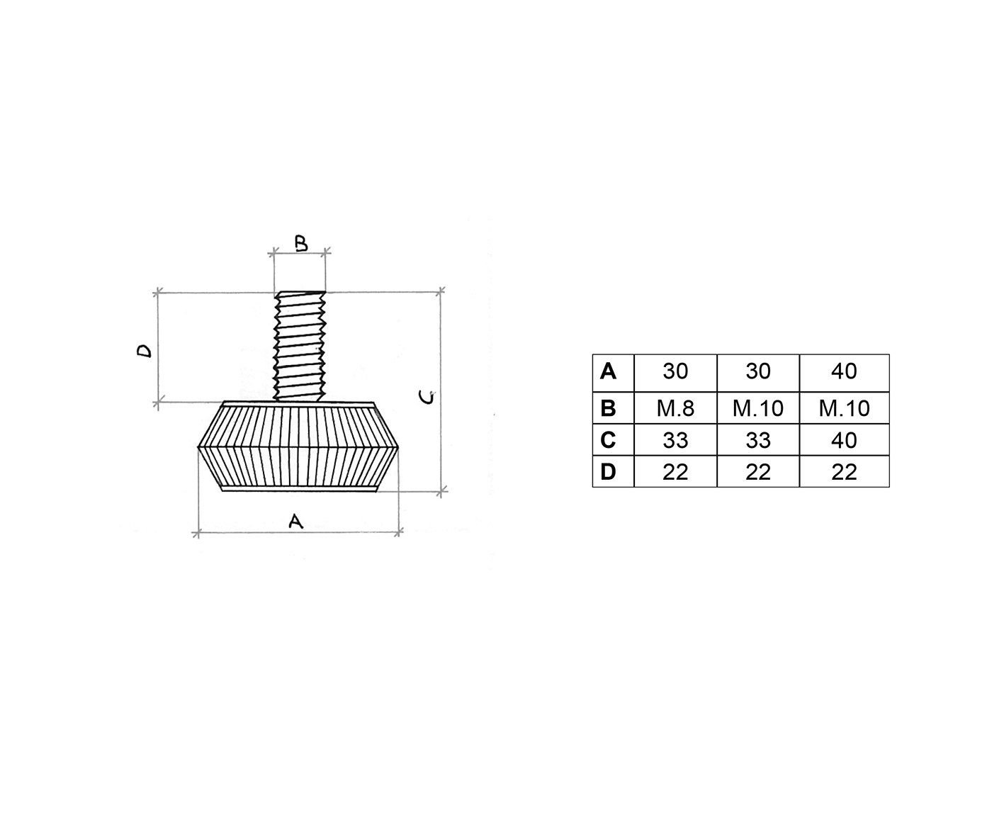Ø mm. 30xM. 10, Ø mm. 30xM. 8, Ø mm. 40xM. 10