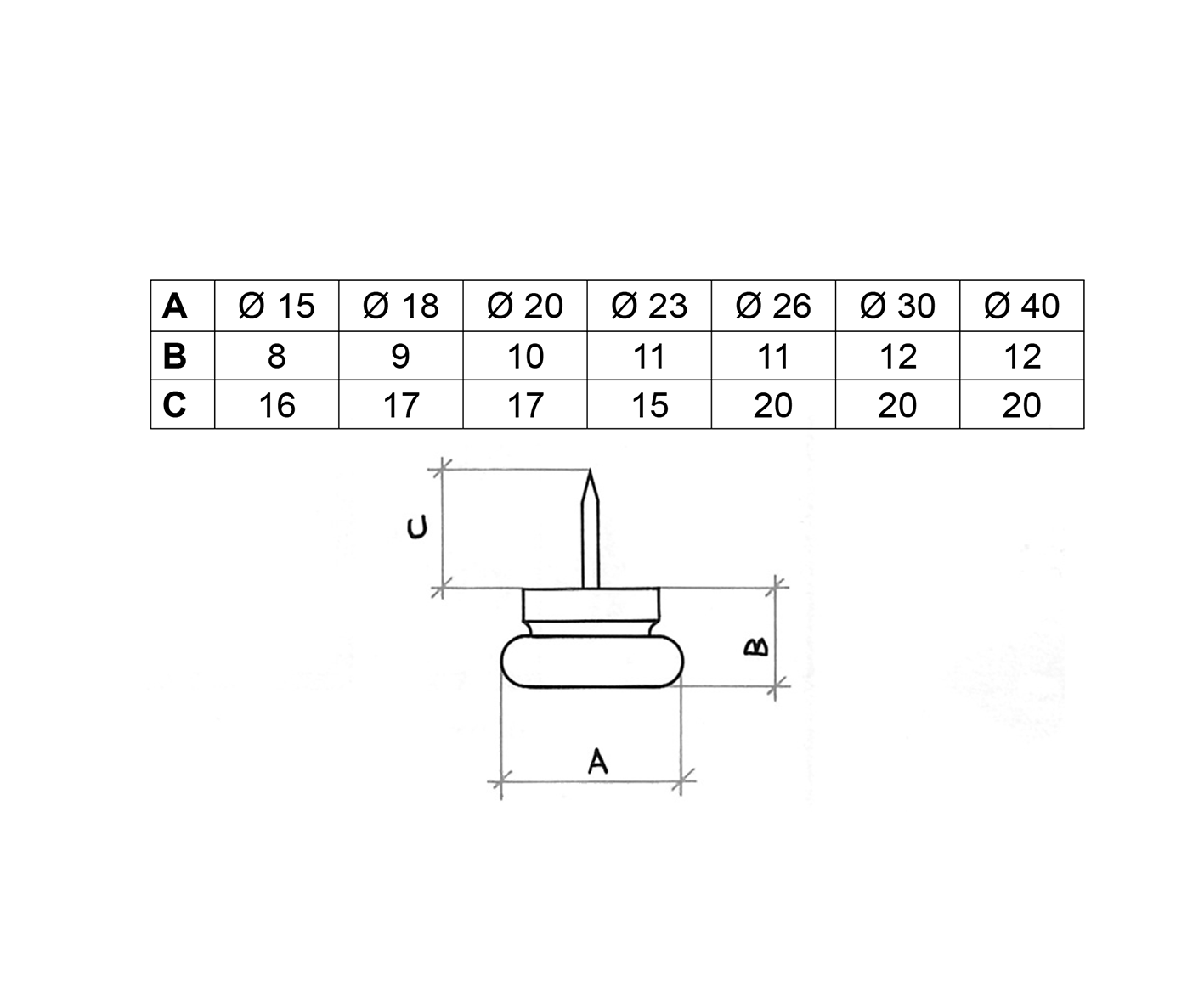 Ø mm. 15, Ø mm. 18, Ø mm. 20, Ø mm. 23, Ø mm. 26, Ø mm. 30, Ø mm. 40