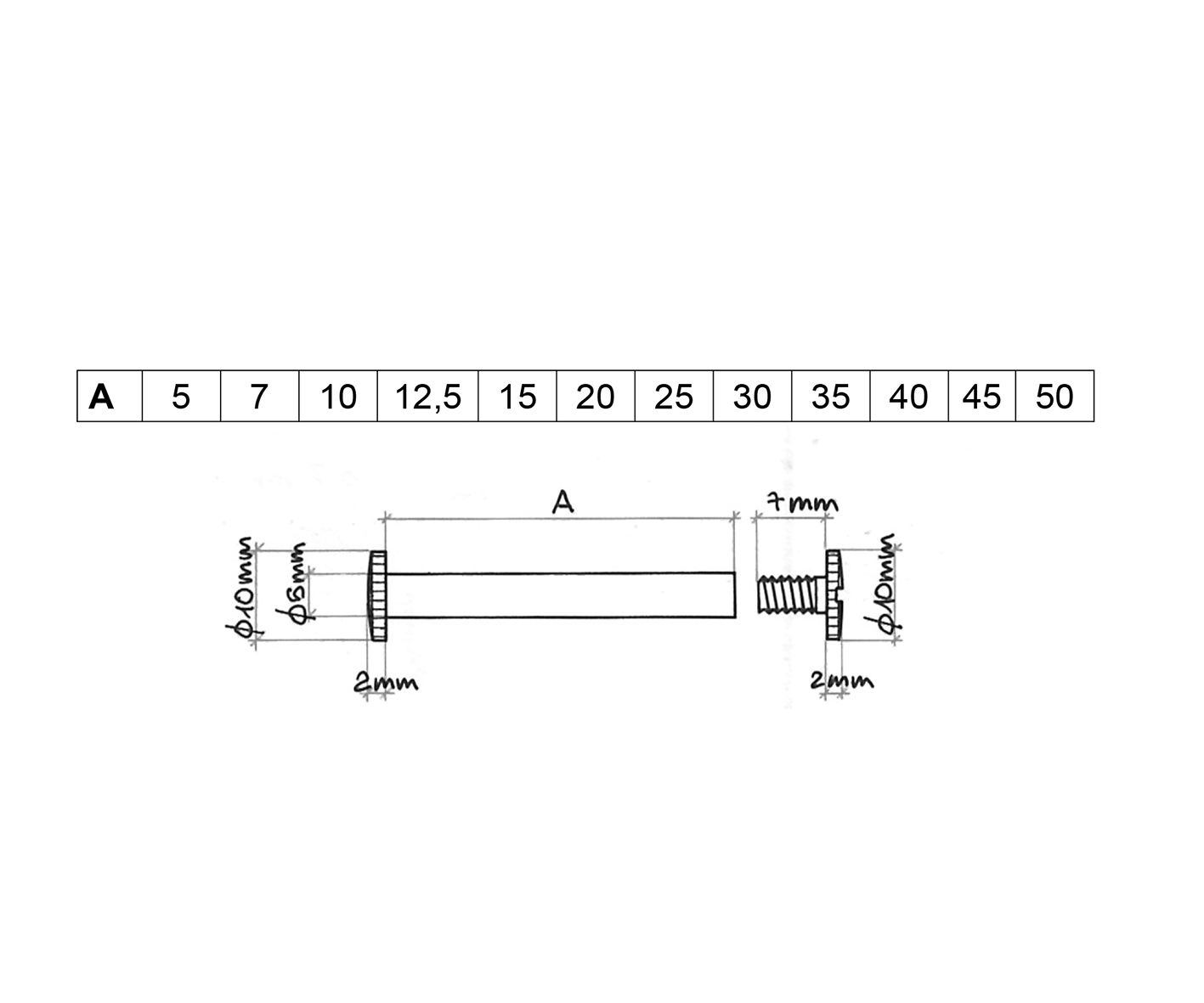 Tirantino 7x36xM.6, bussola ottone art. 0132 10x14xM.6 o nylon art. 0513 11x11xM.6, fondello plastica.