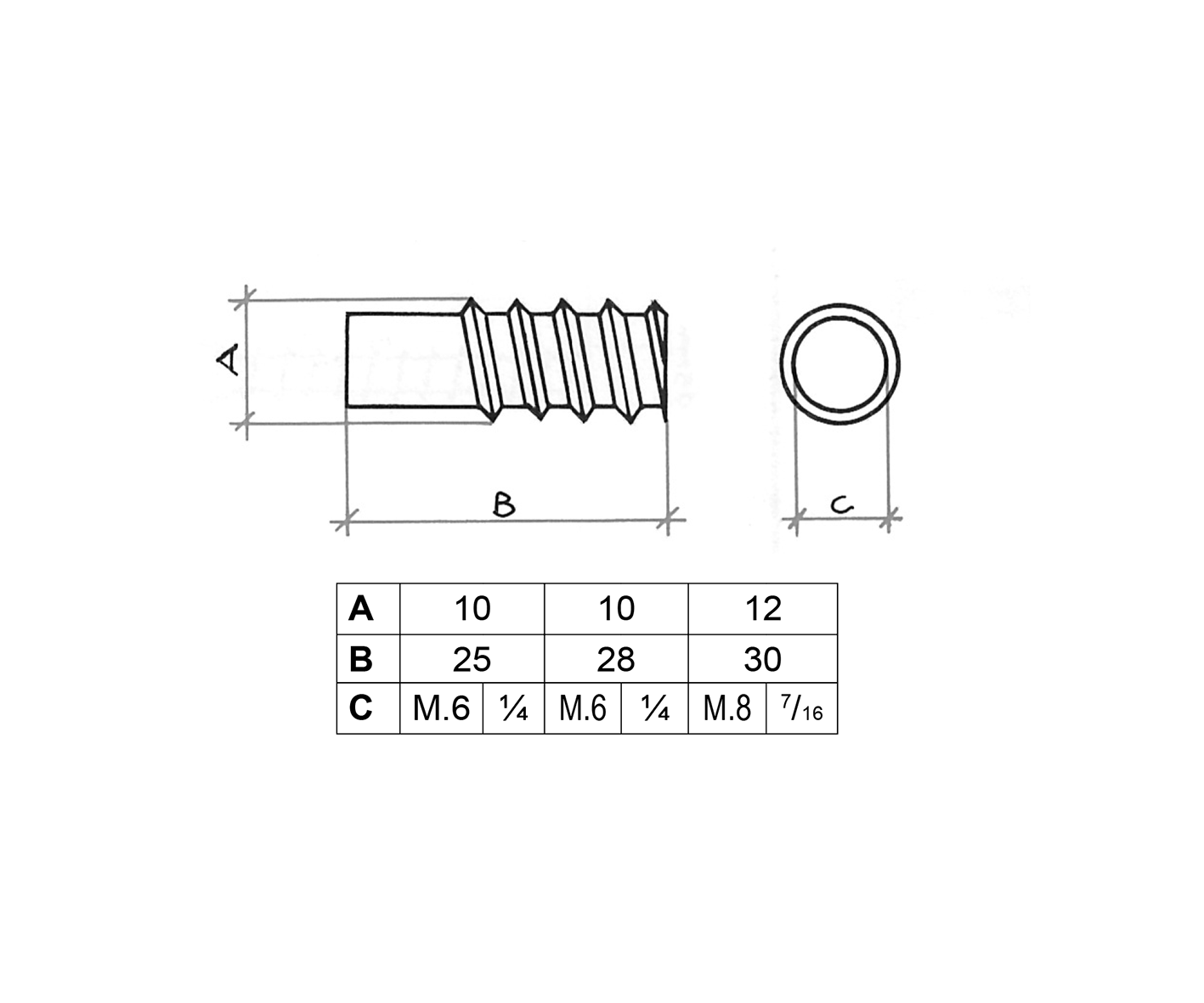 Ø mm. 7x8xM.5 con guarnizione gomma.