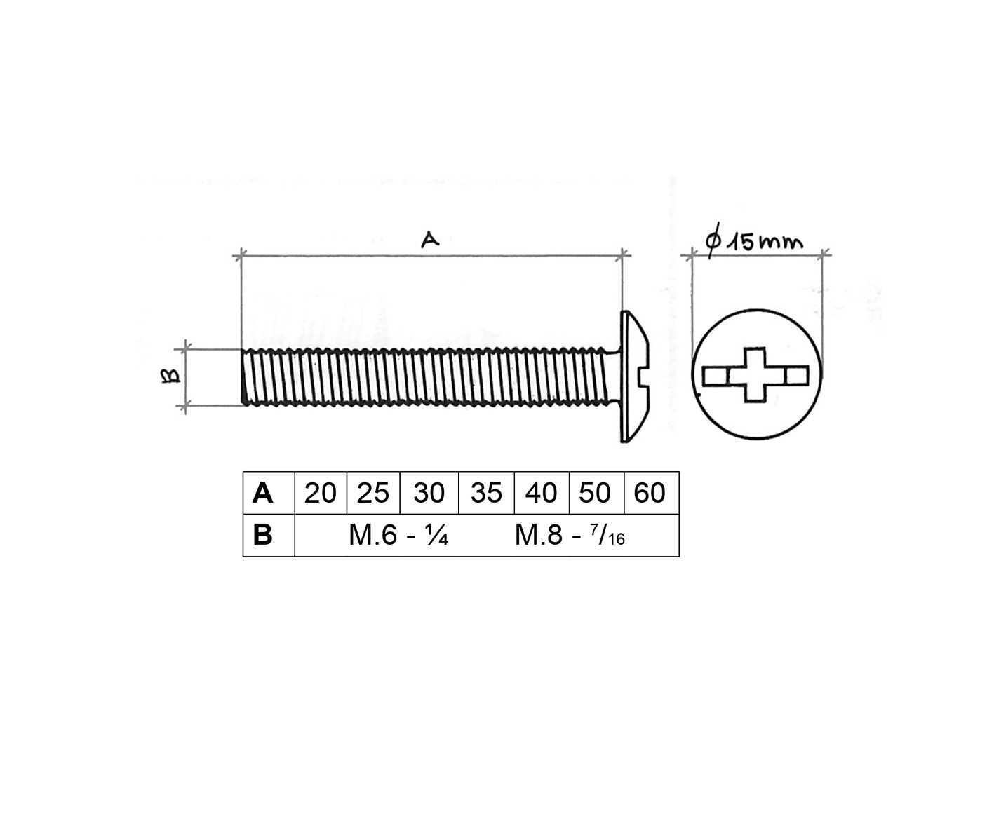 1/4, 7/16, M. 6, M. 8