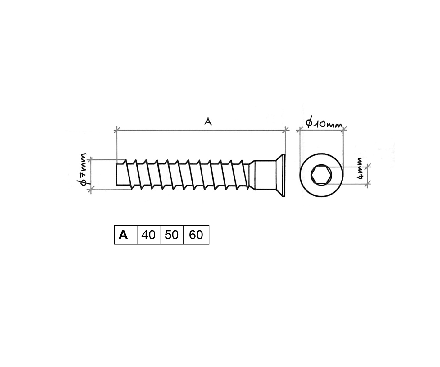 Ø mm. 7×40, Ø mm. 7×50, Ø mm. 7×60