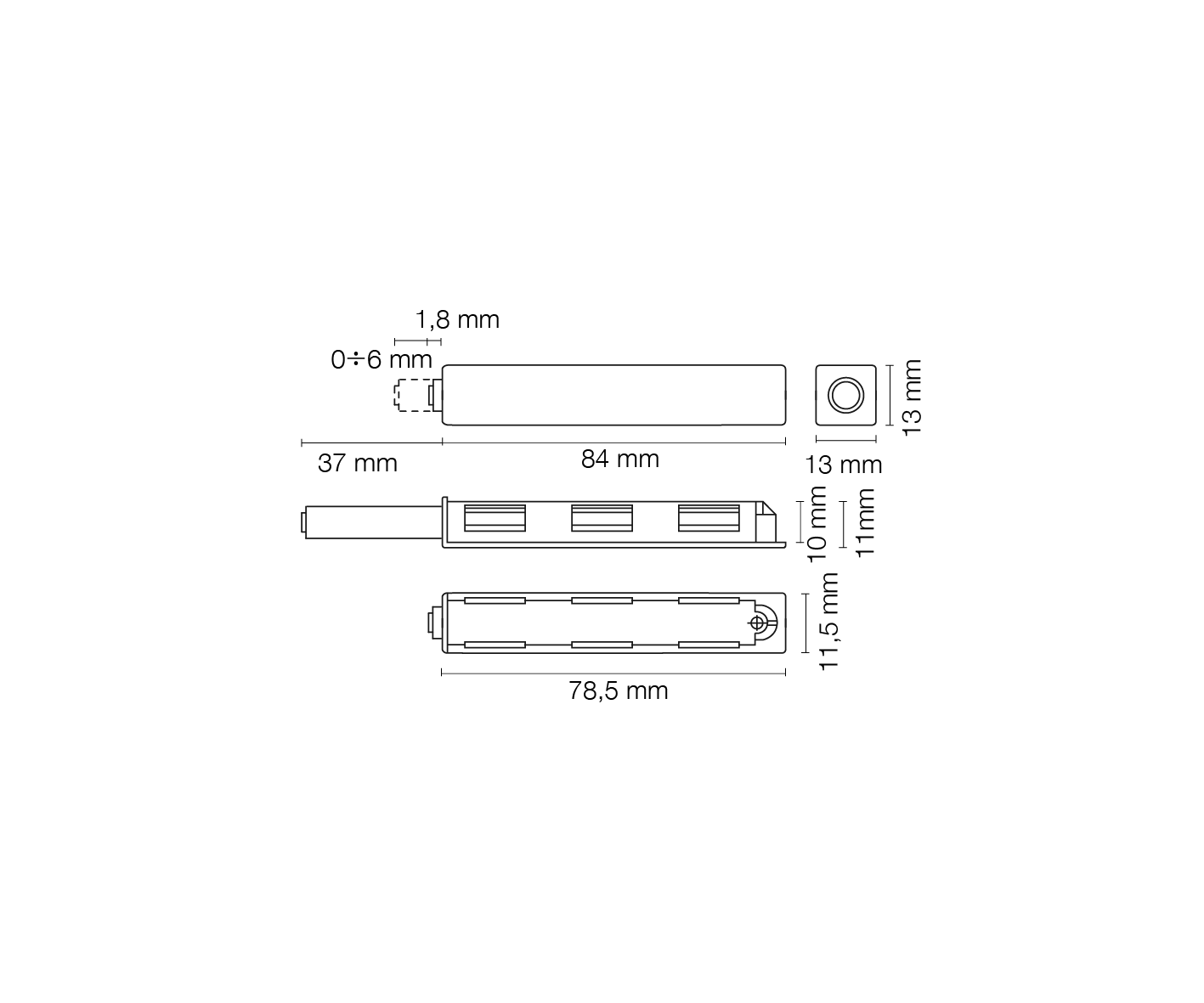 Ø mm. 10, corsa mm. 14 con magnete neodimio.