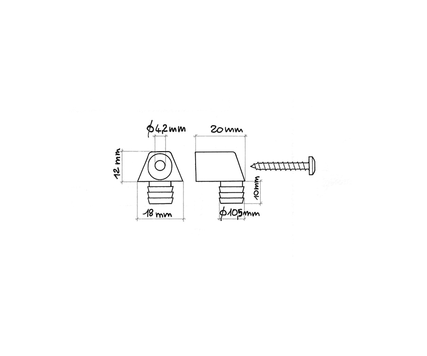 Tirantino 7x36xM.6, bussola ottone art. 0132 10x14xM.6 o nylon art. 0513 11x11xM.6, fondello plastica.