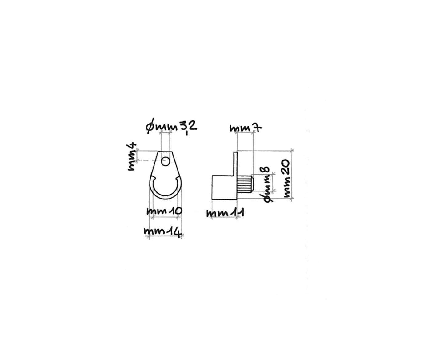 Con perno Ø mm. 8.