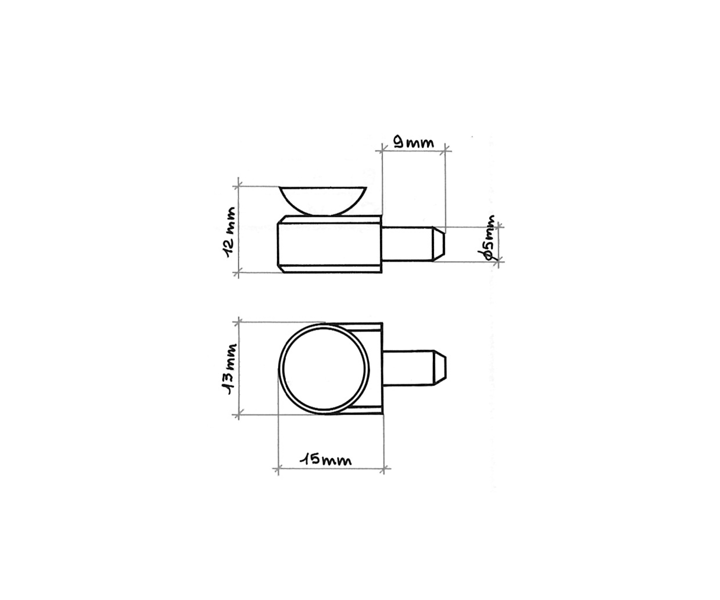 Mezza tonda con perno filettato M.5.