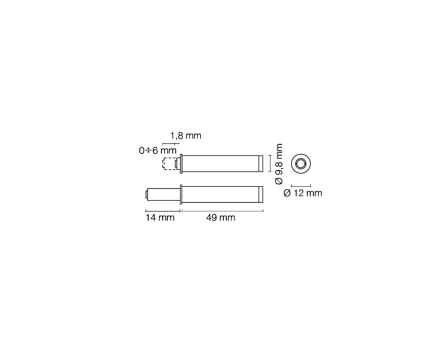 Ø mm. 10, corsa mm. 14 con magnete neodimio.