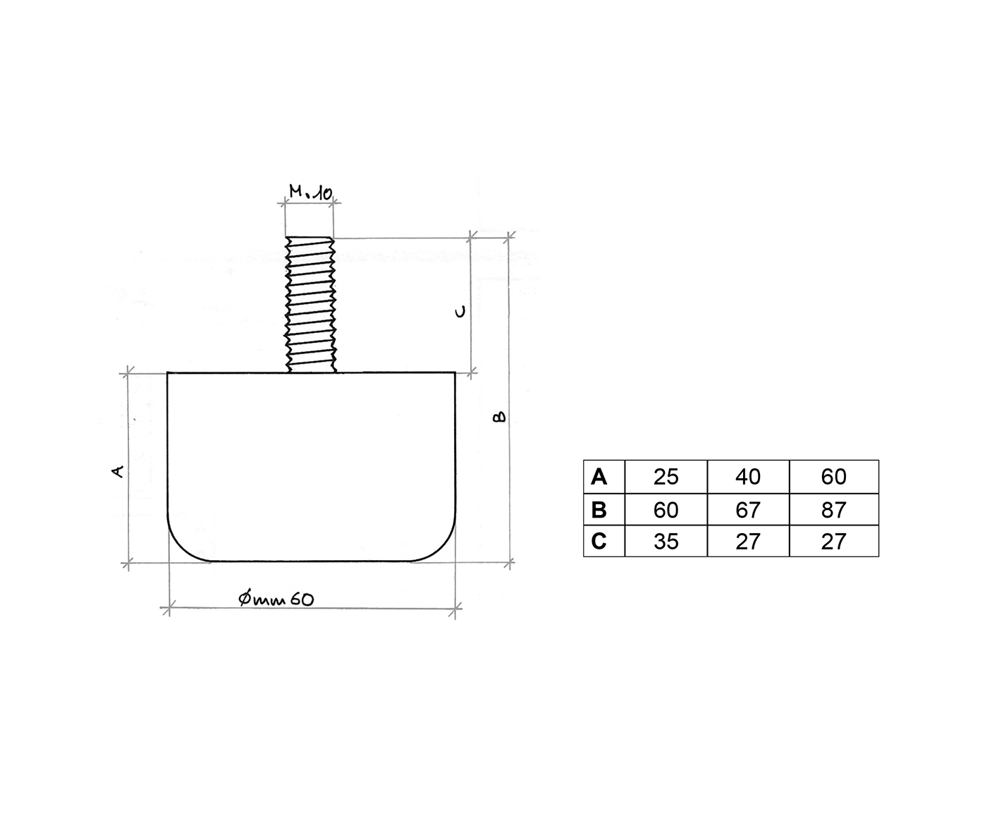 Ø mm. 60×25, Ø mm. 60×40, Ø mm. 60×60