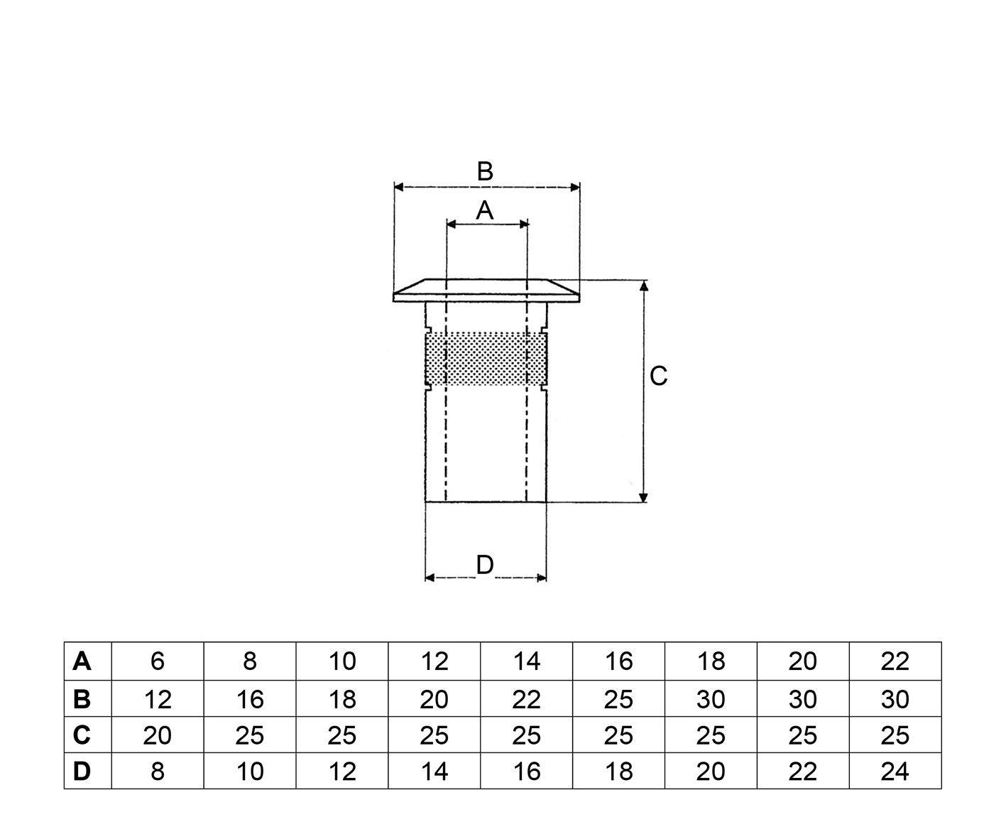 Ø mm. 6, Ø mm. 8, Ø mm. 10, Ø mm. 12, Ø mm. 14, Ø mm. 16, Ø mm. 18, Ø mm. 20, Ø mm. 22
