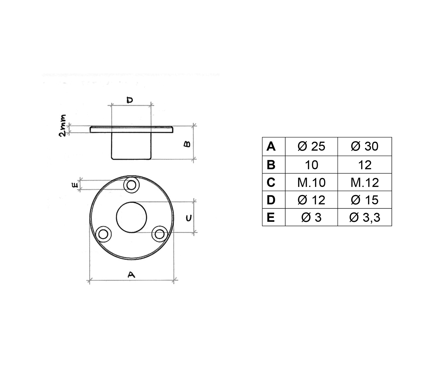 Ø mm. 25x10xM. 10, Ø mm. 30x12xM. 12